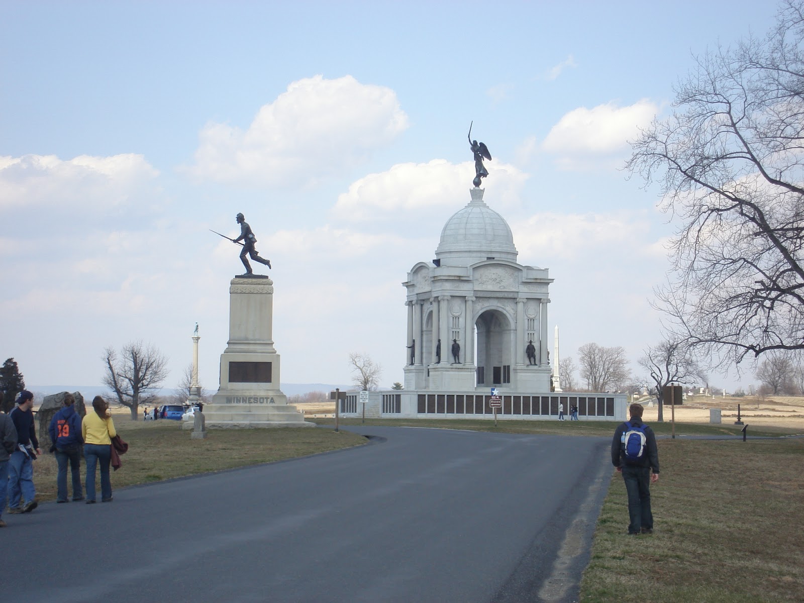 | The First Minnesota monument (left) and the Pennsylvania Memorial. |
